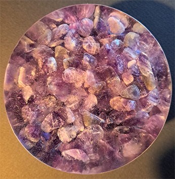 In der Halbkugel befinden sich im unteren Teil folgender Habledelstein (Heilsteine): Amethyst