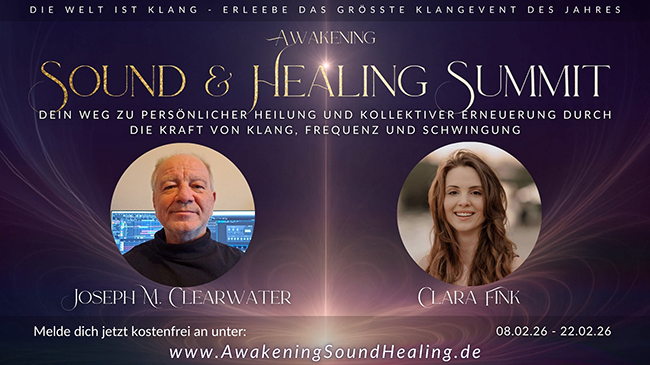 den Awakening Sound & Healing Summit 2026 von Clara Fink – einen kostenfreien Online-Summit, der Klang, Frequenz und Bewusstsein nicht erklärt, sondern erfahrbar macht und bei dem auch ich als Sprecher dabei bin.
